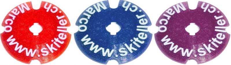 Dein individueller Skiteller mit deinem Namen oder Text (max. 20 Zeichen). Der Text ist auf der Oberseite in 3D vorhanden, dadurch interlässt du einen Eindruck im Powder.