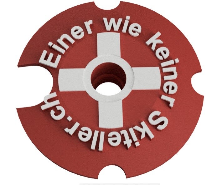 Dein individueller Skiteller mit deinem Namen oder Text (max. 20 Zeichen). Der Text ist auf der Oberseite in 3D vorhanden, dadurch interlässt du einen Eindruck im Powder.