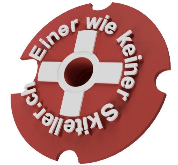 Dein Skiteller mit dem legendären Text "Einer wie keiner, Skiteller.ch". Zeige damit auf dass du keine billige Kopie bist.